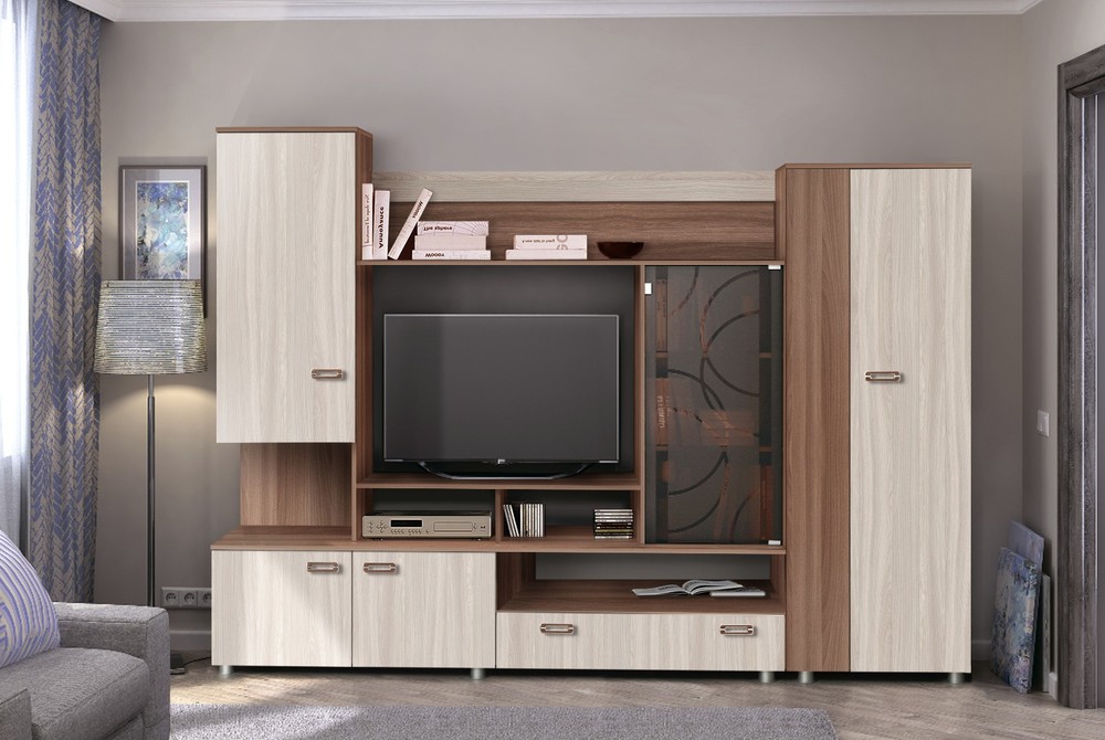 Шкаф распашной, пенал, напольная тумба, ниша для ТВ, открытая навесная полка.