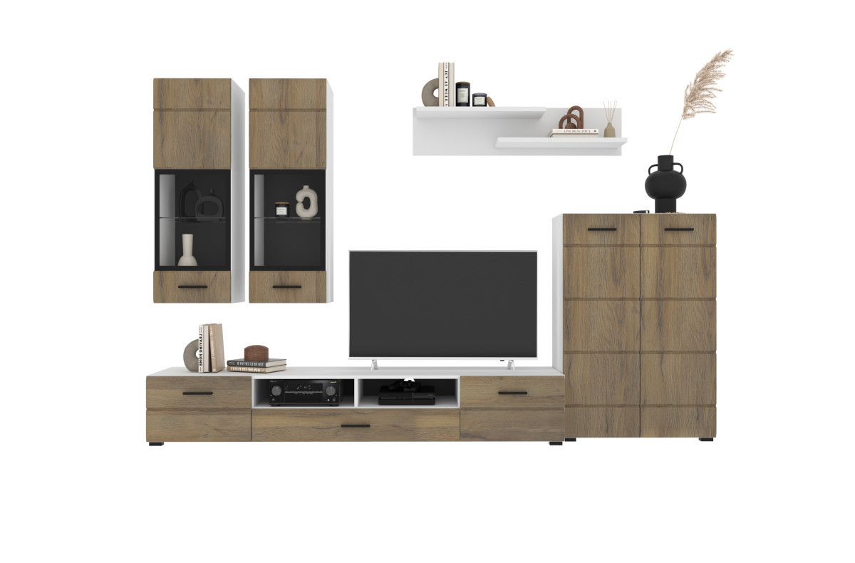 Гостиная «Эверест-1» Дуб вотан/белый шагрень Рикко