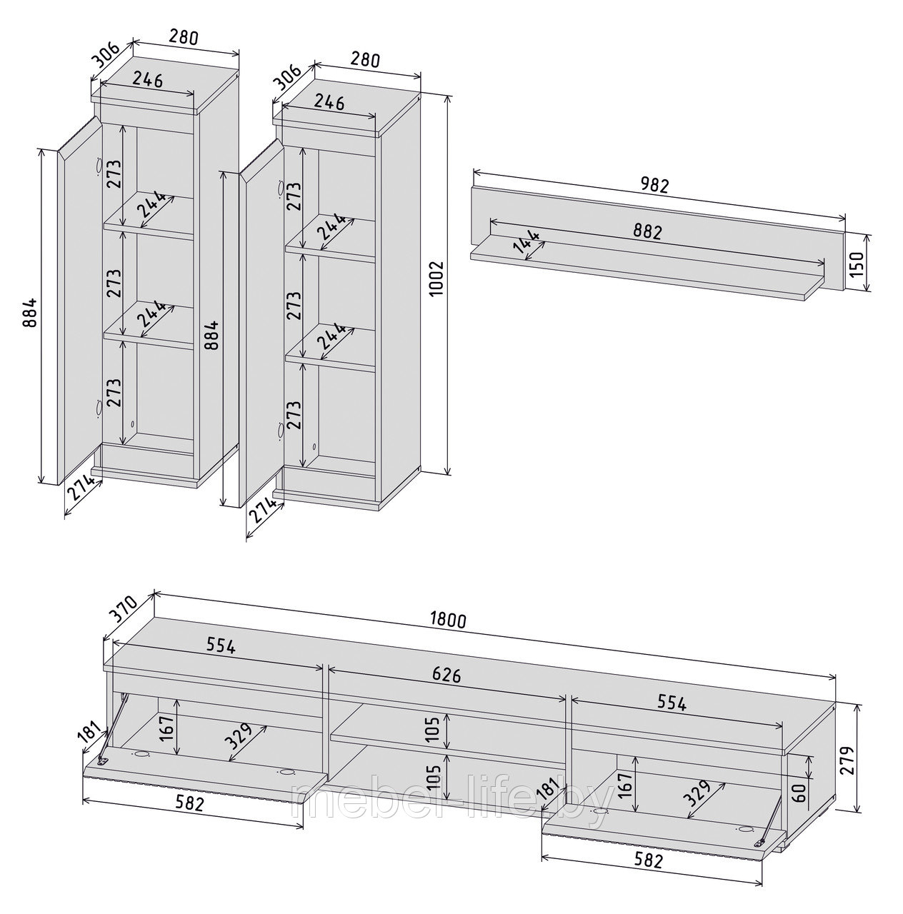 Размер: 2756x438x1637 мм. Материал: МДФ/ЛДСП.