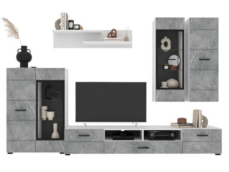 Современная стенка со светлыми фасадами. Стильный дизайн.
