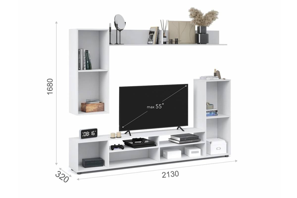 Максимальный размер под ТВ: 1300 х 1100 (Ш х В). Диагональ не более - 55" дюймов.