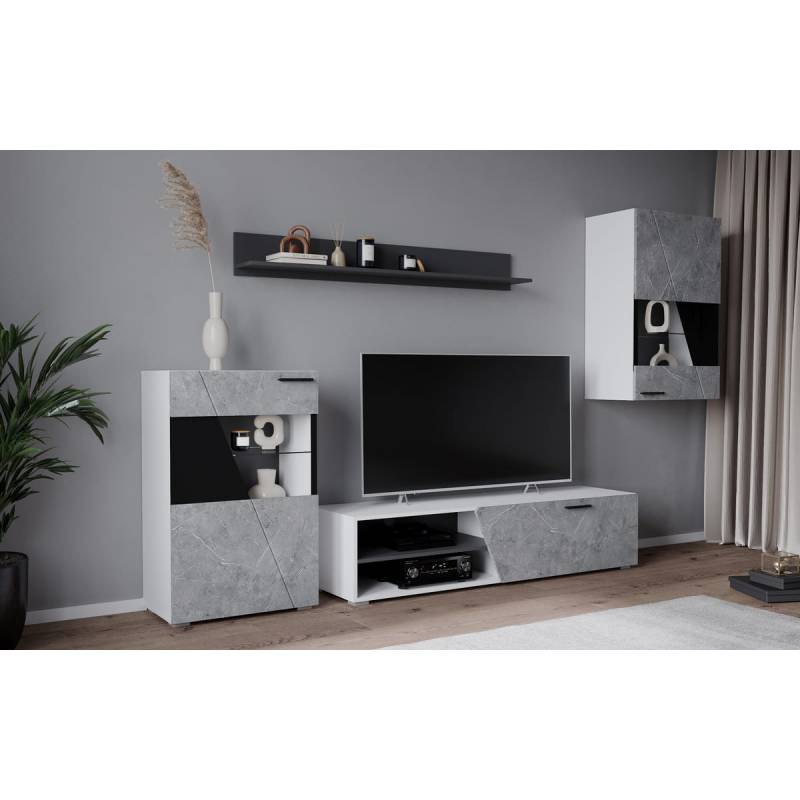 Гостиная «Эверест-1» Дуб вотан/белый шагрень Рикко