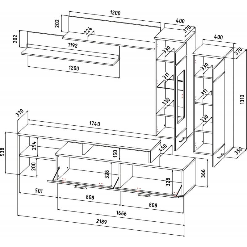 Ширина ниши под ТВ (мм): 1204.