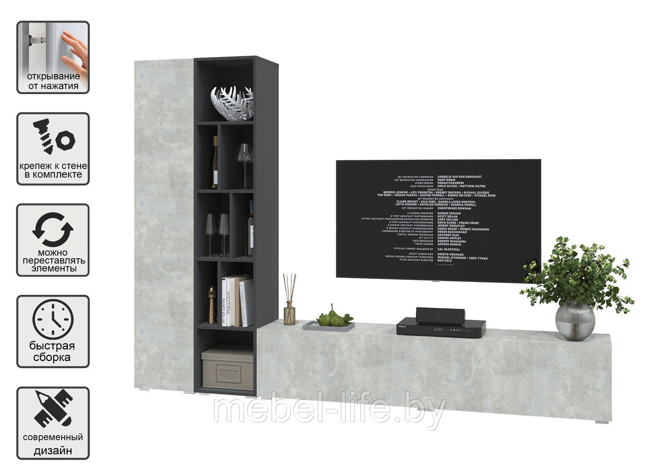 Гостиная «NEO 9» Антрацит - Бетон Лайт