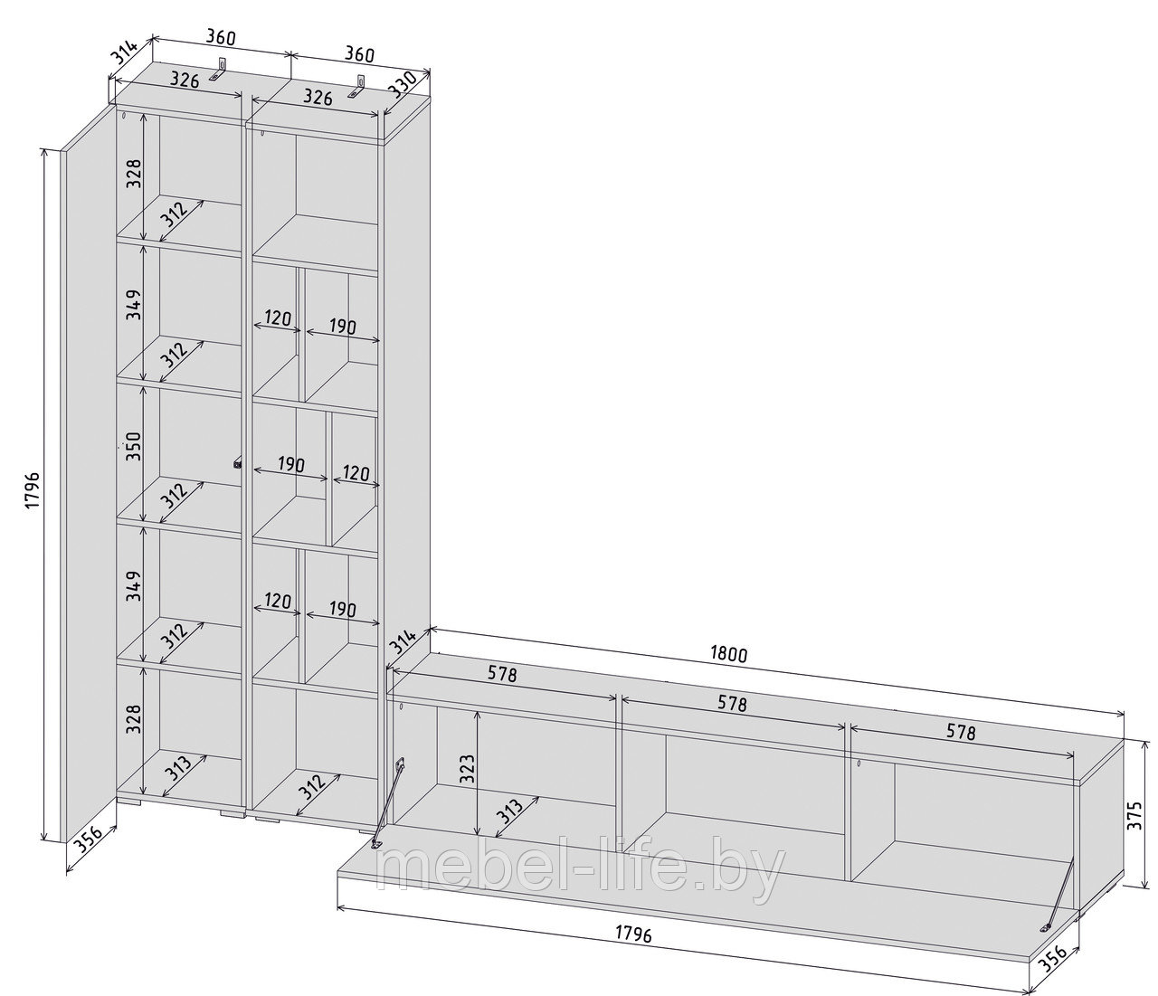 Габариты (ШхГ): 2054х362 мм. Материал: ЛДСП/МДФ.