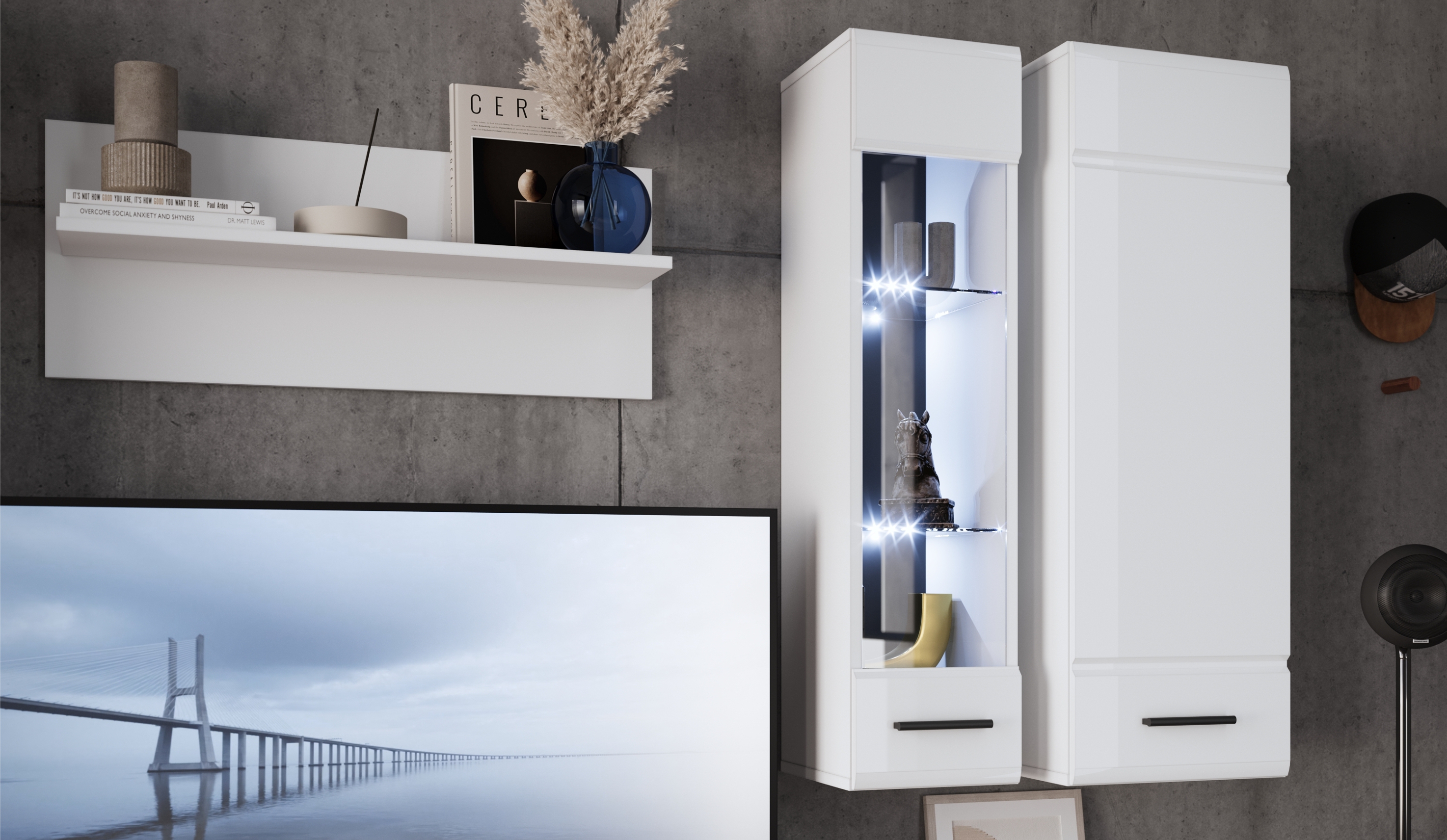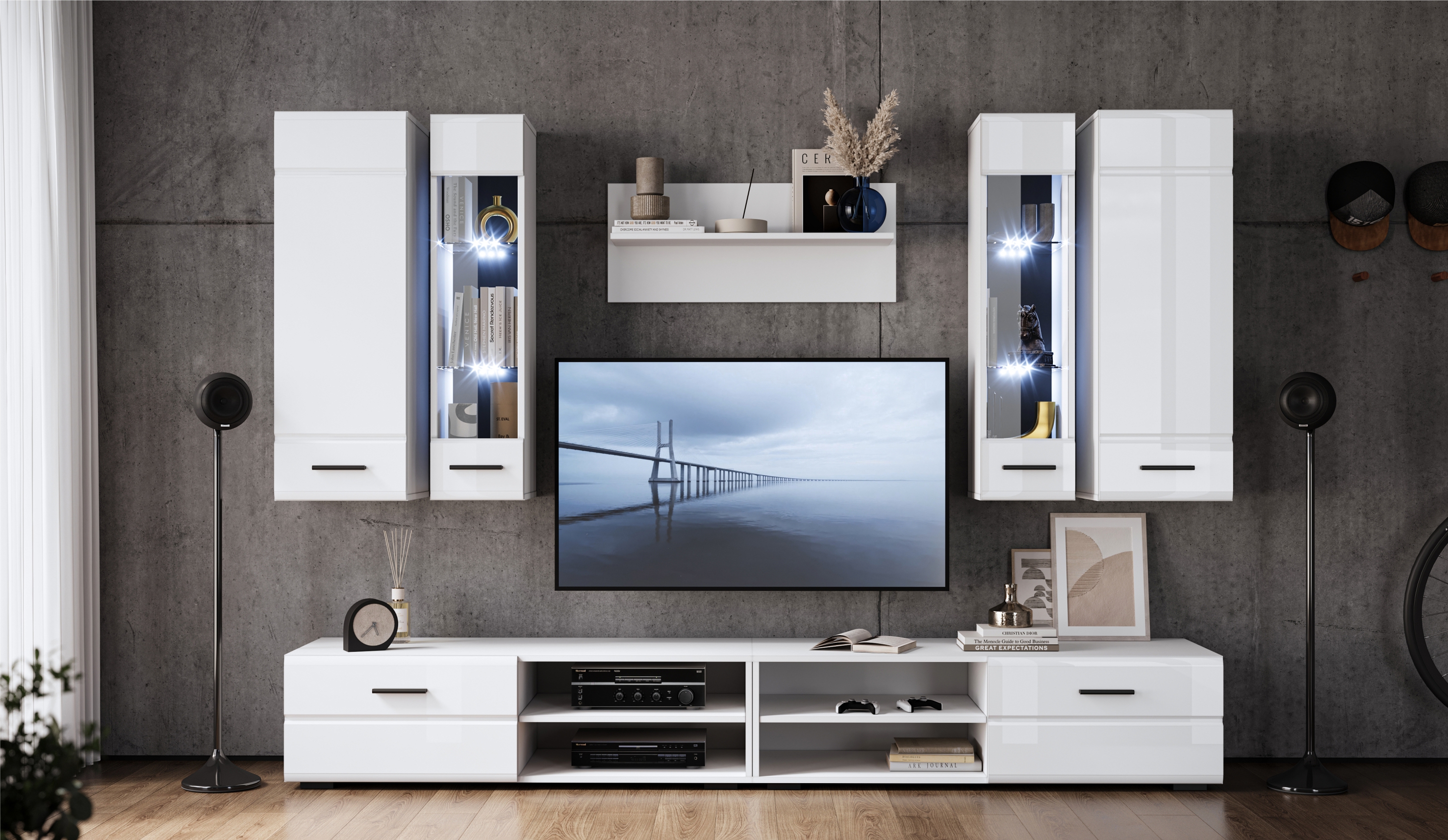 Модульная гостиная «Сохо 5» (бетон пайн белый)