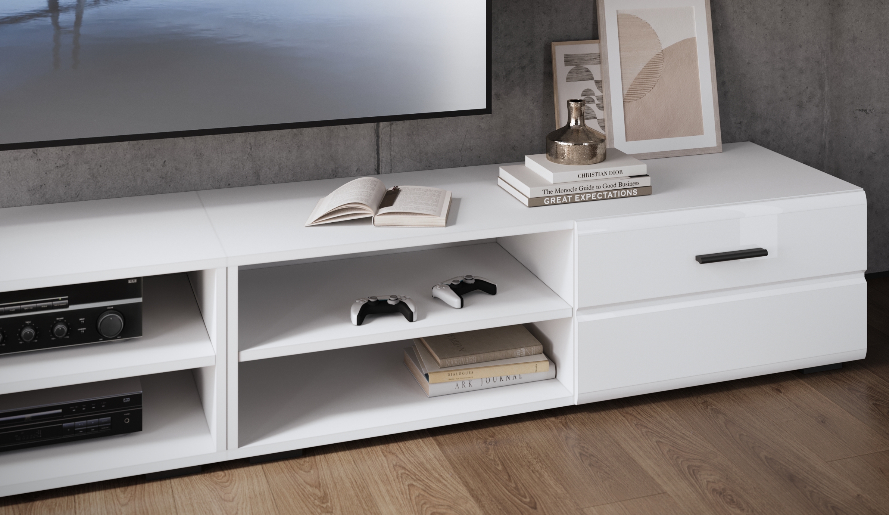 Модульная гостиная «Йорк» белый жемчуг-белый глянец, вариант 1