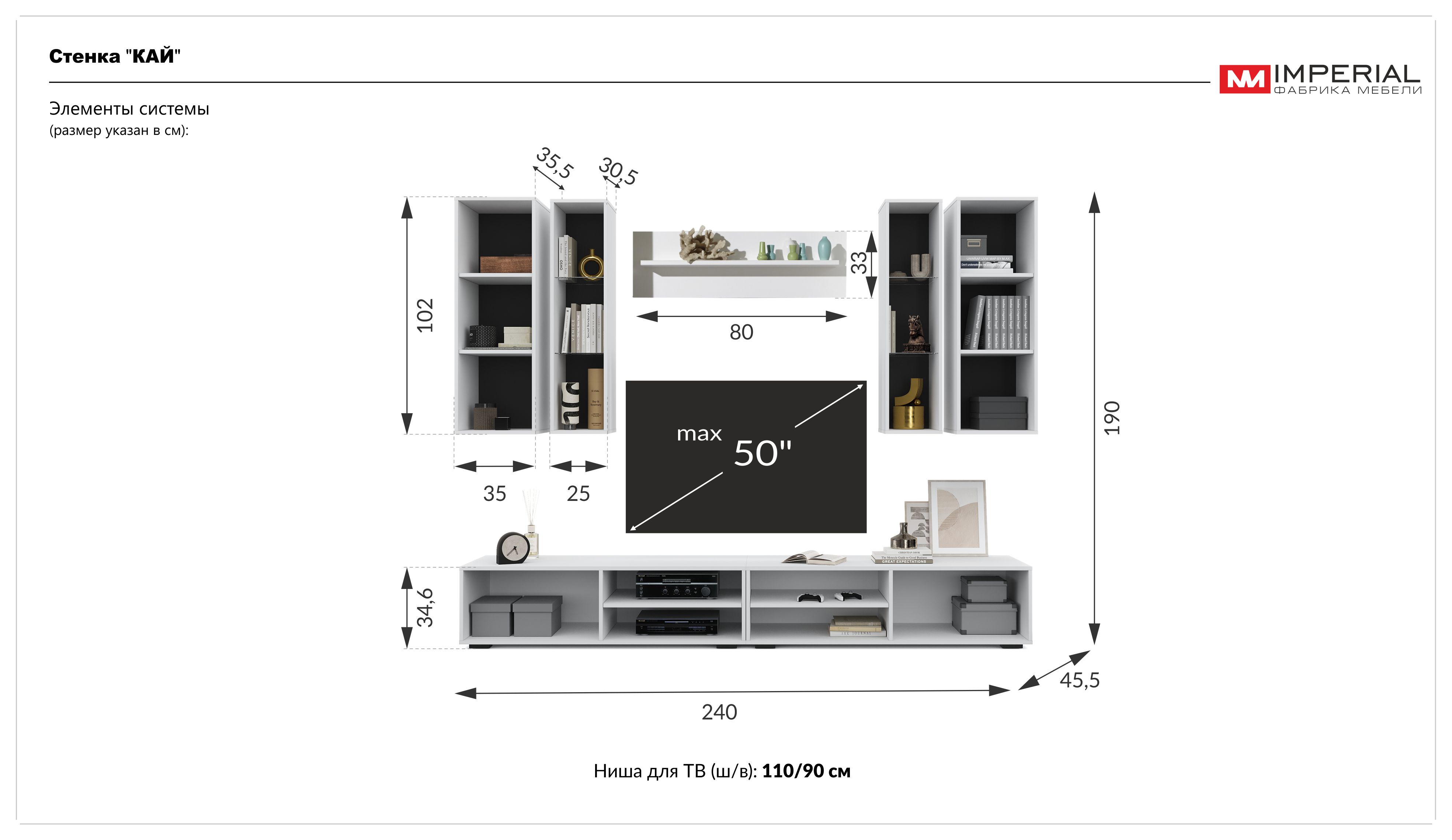 - Макс. диаметр ТВ (ШхВ): 50 см