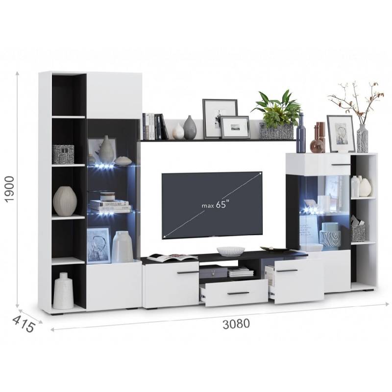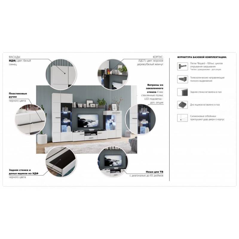 Гостиная «Невада» — это стильное и функциональное решение для вашего интерьера. Глянцевые фасады белого цвета придают гостиной современный и элегантный вид. Материал корпуса из ЛДСП Kronospan обеспечивает прочность и долговечность конструкции.