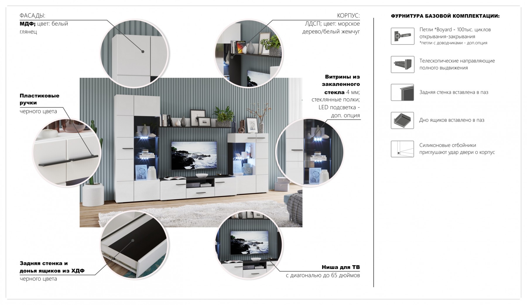 Коллекция модульной мебели для гостиной. Материал: ЛДСП, МДФ.