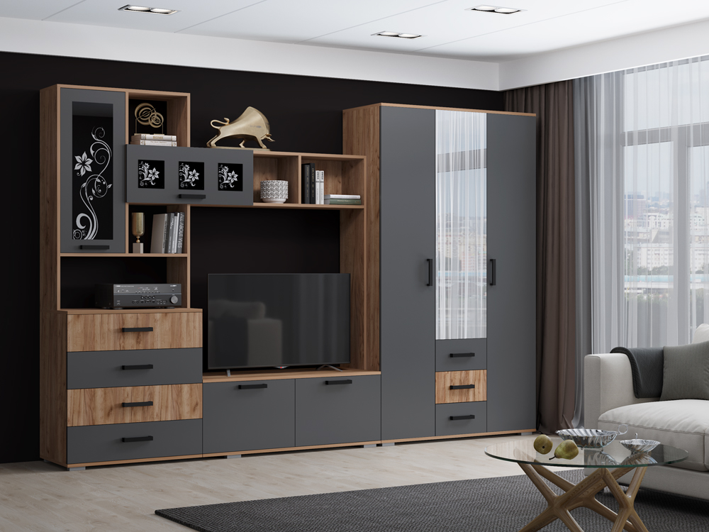 Гостиная «Quartz-8 (Кварц)» Дуб нокс без подсветки ИнтерЛиния
