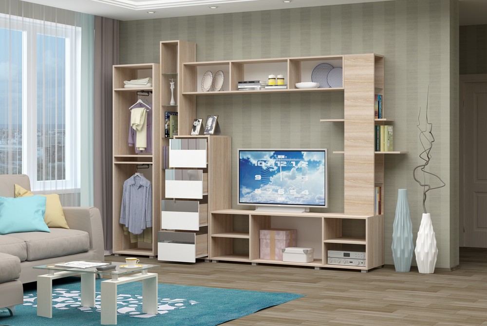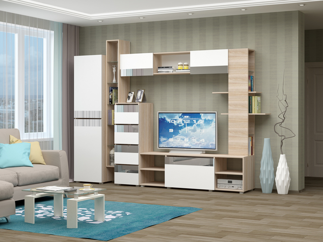 Современная стенка для любителей минимализма. Материал: ЛДСП, МДФ.