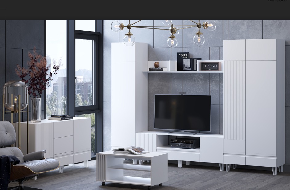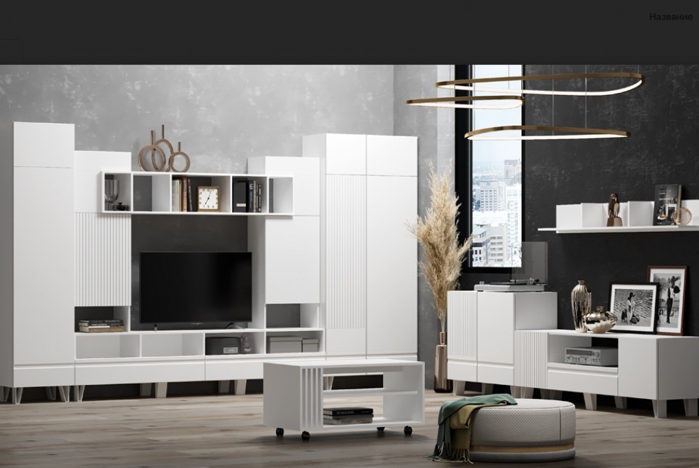 Цена указана на комплектацию, которая показана на первой картинке (комод №2, пенал, тумба под ТВ, навесной модуль, шкаф, журнальный стол).