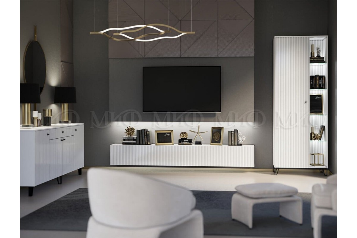Гостиная «Оливия-9» (белый - белый глянец)