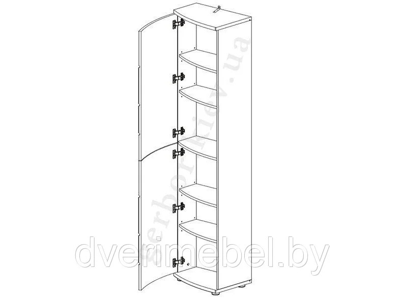 шир./выс./гл. – 50/184/35 см, две двери, согнутые по всей ширине; за каждой дверью – по две округлые полки;