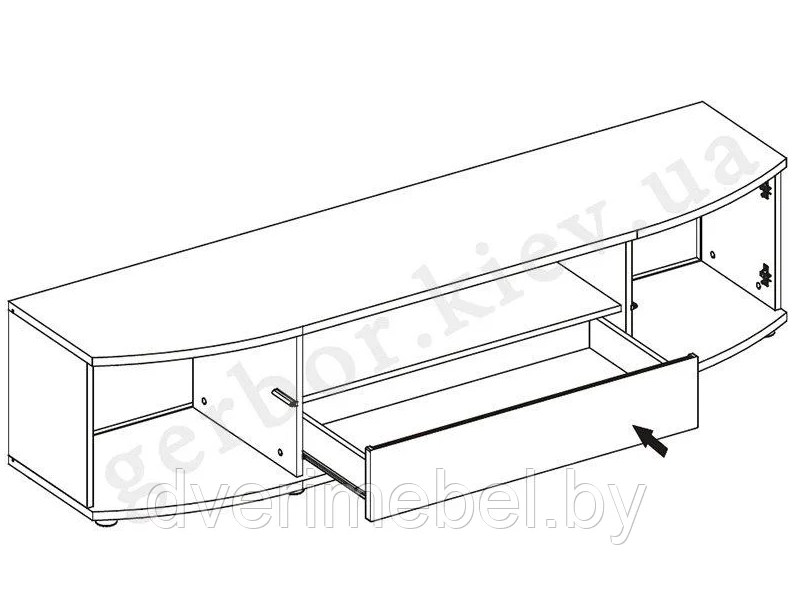 шир./выс./гл. – 190/43/48 см, одна ниша с отверстием для проводов в задней стенке, один выдвижной ящик, две двери, согнутые по всей ширине;
