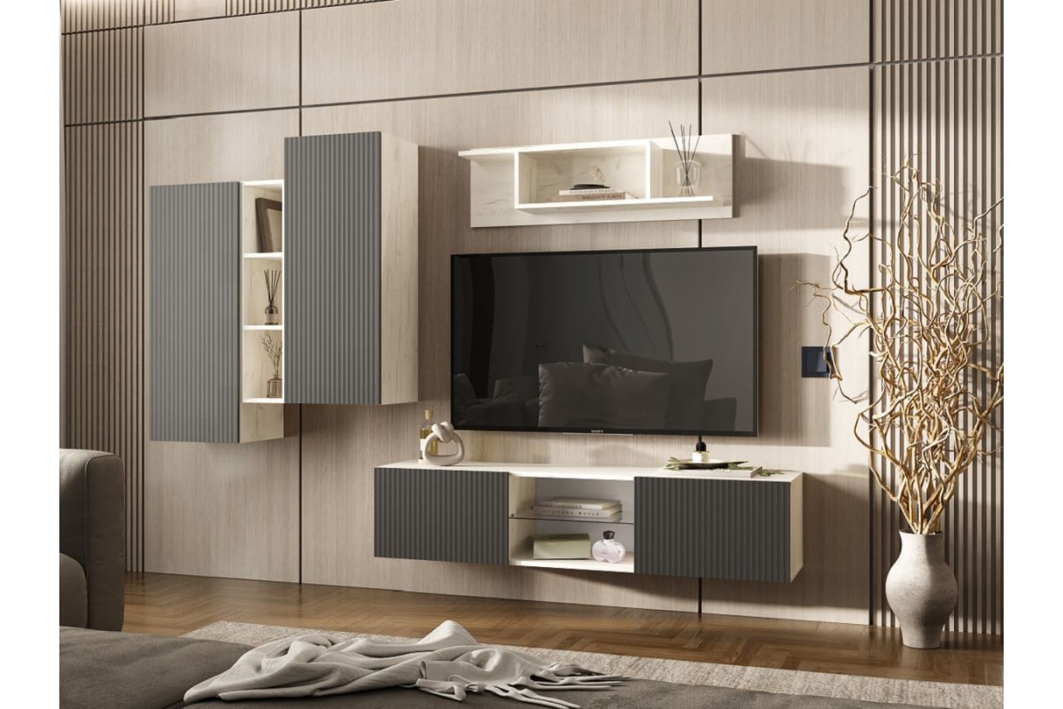 Гостиная «Оскар-1» (дуб крафт белый - графит софт)
