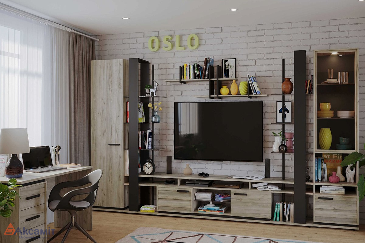 Вместительная тумба в гостиной никогда не будет лишней. На ней можно разместить телевизор и использовать как высокую тумбу под ТВ. Изюминка OSLO 5 Тумба МЦН - необычный фасад в массивной раме и с раскладкой. Контрастные темные ручки из массива дерева подчеркивают цвет и текстуру натурального дерева. Благодаря оригинальному дизайну этого стильного и эргономичного модуля, можно разнообразить и украсить любой интерьер гостиной.