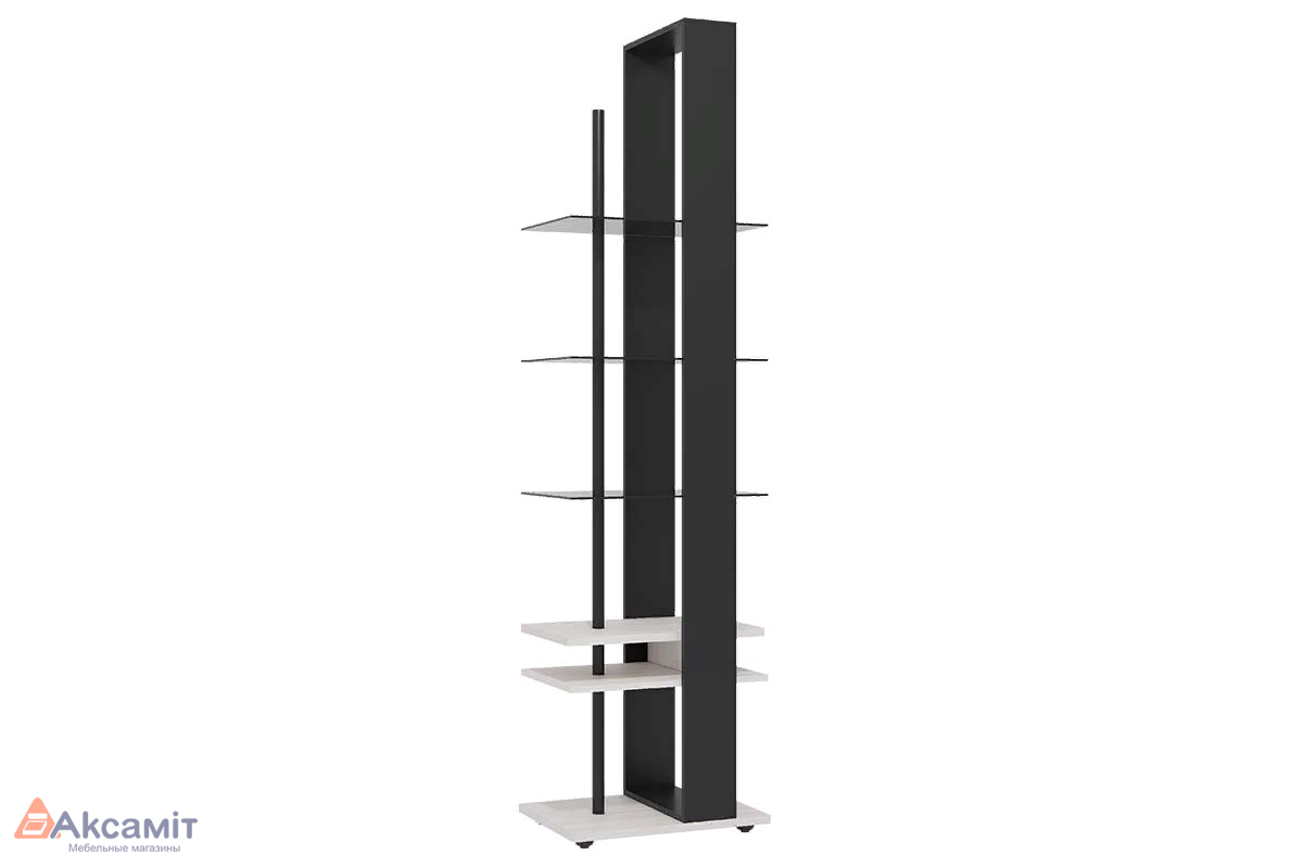 - Стильный стеллаж OSLO 25 будет уместно смотреться в интерьере лофт. Каркас из черного металла в сочетании с декором Дуб Серый и тонированным стеклом добавляет модулю урбанизма, современности и прочности.