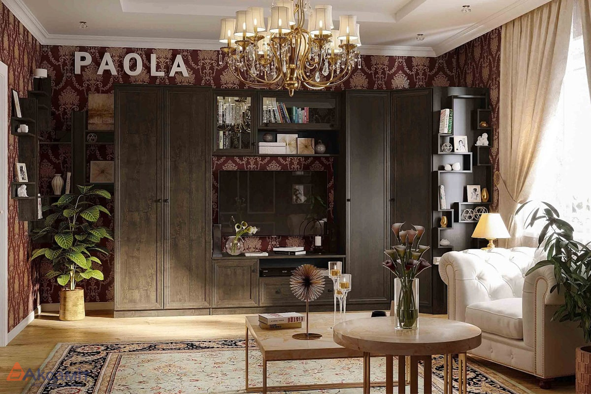 Гармонично дополнить интерьеры разных стилевых направлений позволит многообразие модулей гостиной PAOLA. Стеклянные фасады, обрамленные сложным профилем МДФ, и тёмная цветовая гамма хорошо сочетается с любой современной мебелью и легко впишется в обстановку. Оптимальные габариты модулей коллекции позволят сохранить свободное пространство без ущерба функциональности.