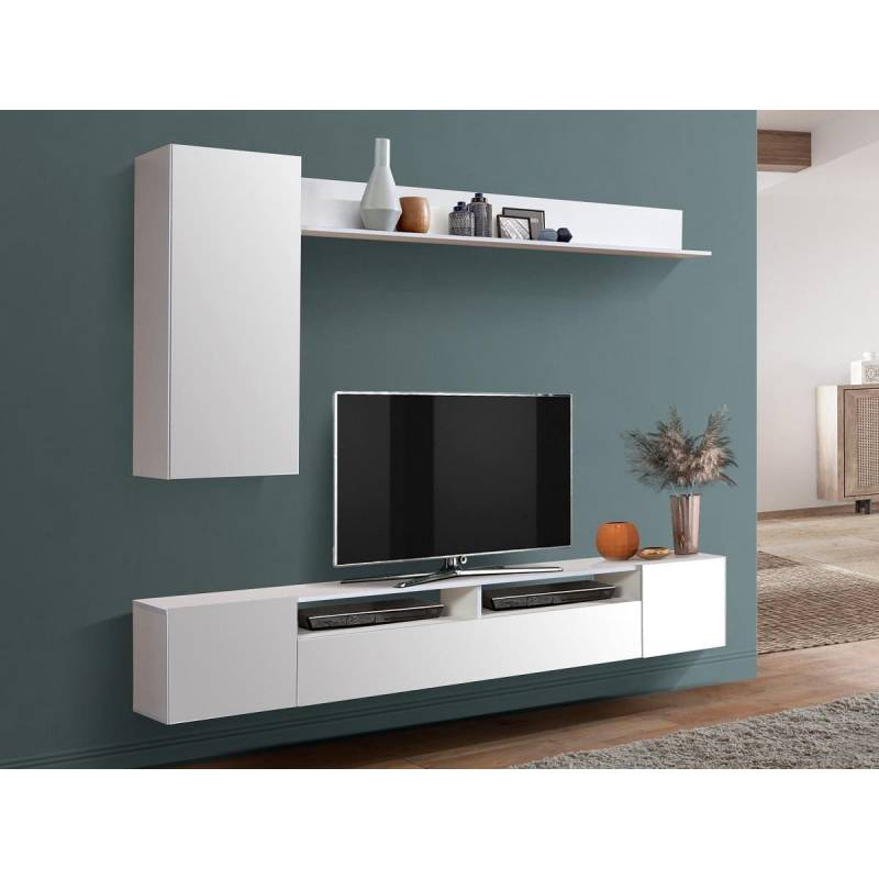 Коллекция модульной мебели с белыми глянцевыми фасадами для гостиной. Материал: МДФ, ЛДСП.