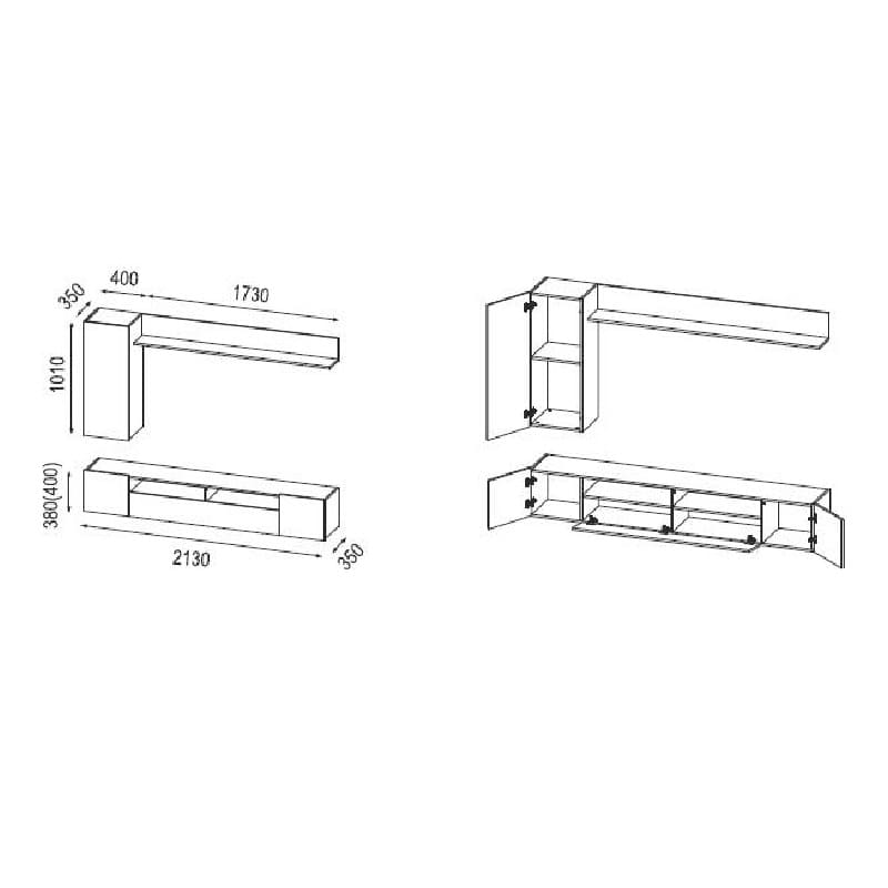 Размер: 2080x384x1620 мм. Материал: МДФ/ЛДСП.