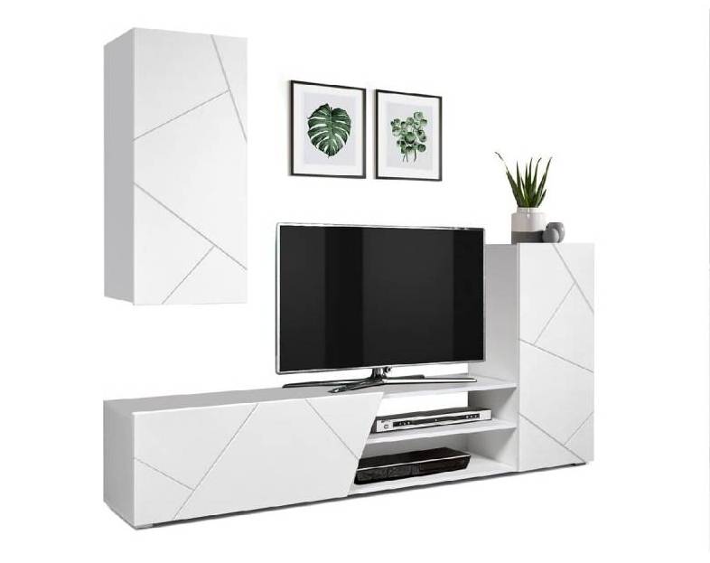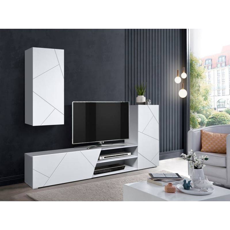 Коллекция модульной мебели с белыми глянцевыми фасадами для гостиной. Материал: МДФ, ЛДСП.