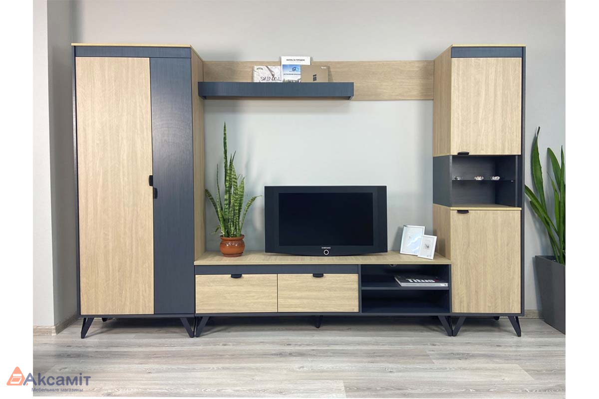 Модульная гостиная «Сканди» композиция 3 (Графит, Дуб Вотан)