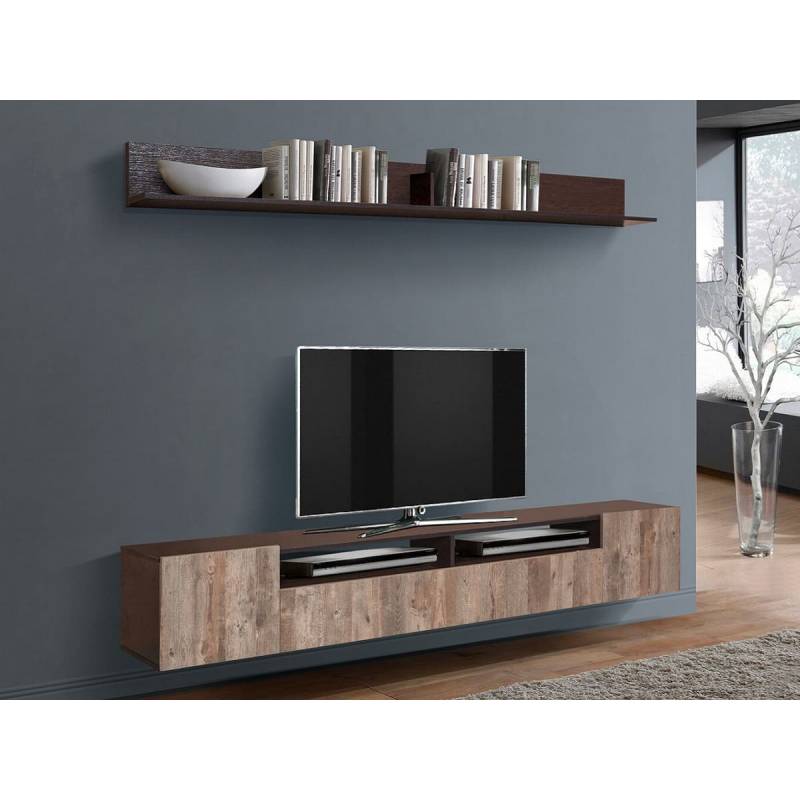 Два остекленных стеллажа, ТВ-тумба, комод, журнальный стол, подвесные полки.