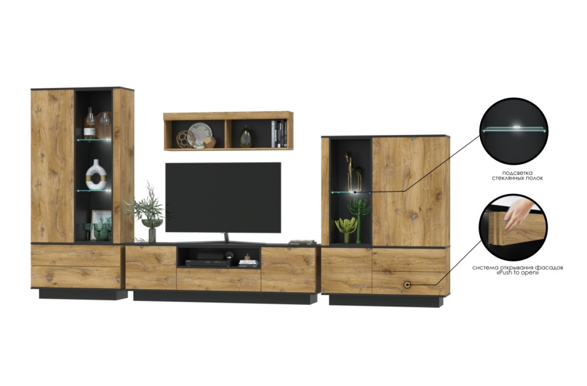Гостиная «NEO 1 (НЕО 1)» Дуб вотан с подсветкой ИнтерЛиния