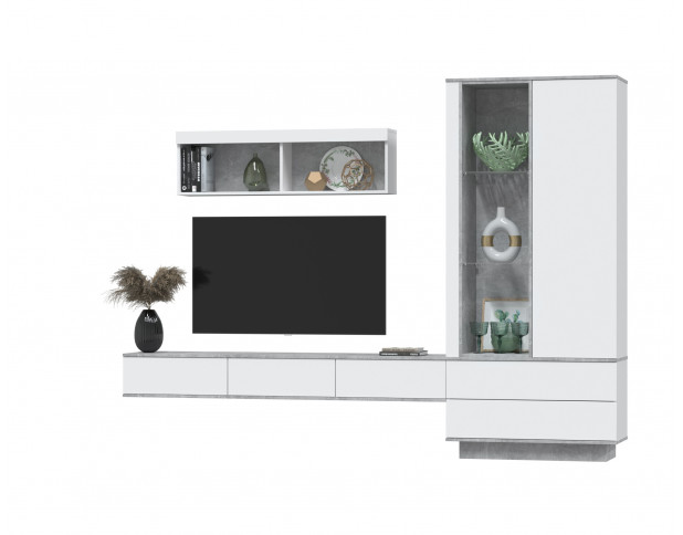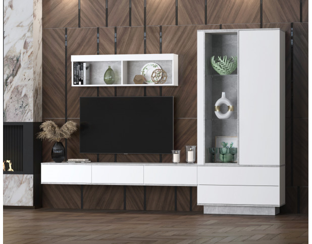 Горка с подсветкой и двумя навесными модулями. Тумба под ТВ с контрастными вставками.