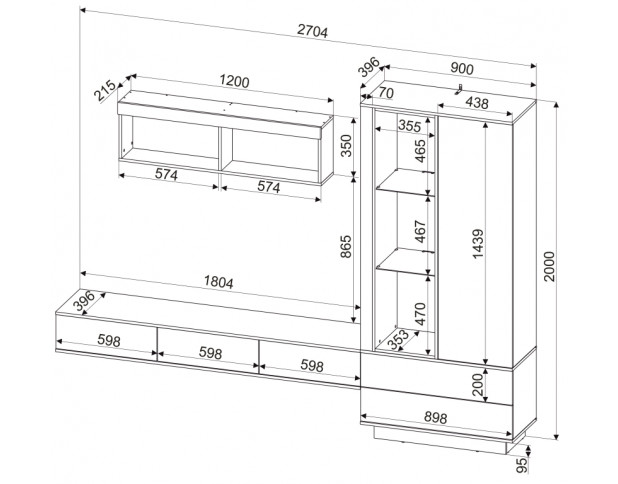 Размер (ШхГхВ): 3200х460х2000 мм. Материал: ЛДСП.