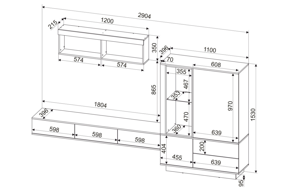 Размер: 2200x370x1760 мм. Материал: МДФ/ЛДСП.