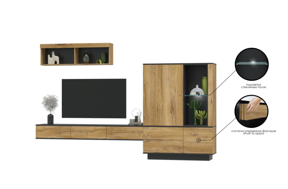 Гостиная «Quartz-12 (Кварц)» Дуб нокс с подсветкой ИнтерЛиния