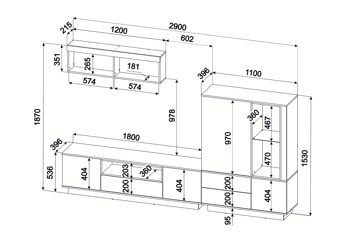 Размер: 2800х466х2000 мм. Материал: МДФ/ЛДСП.
