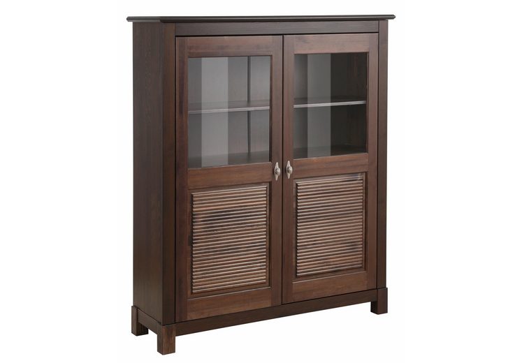 Нижний модуль включает две вместительных распашных ниши и аккуратный шкафчик на две полки.