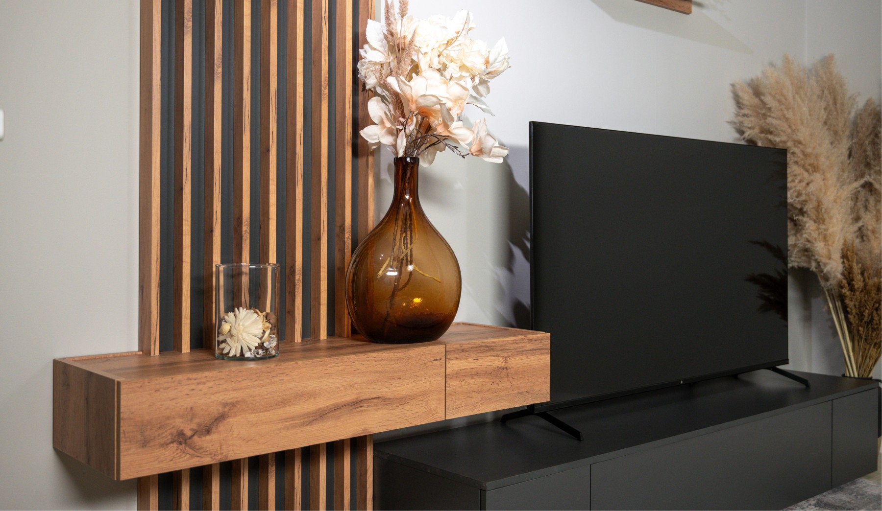 Газовые амортизаторы в тумбе TV обеспечивают плавное открывание и закрывание;