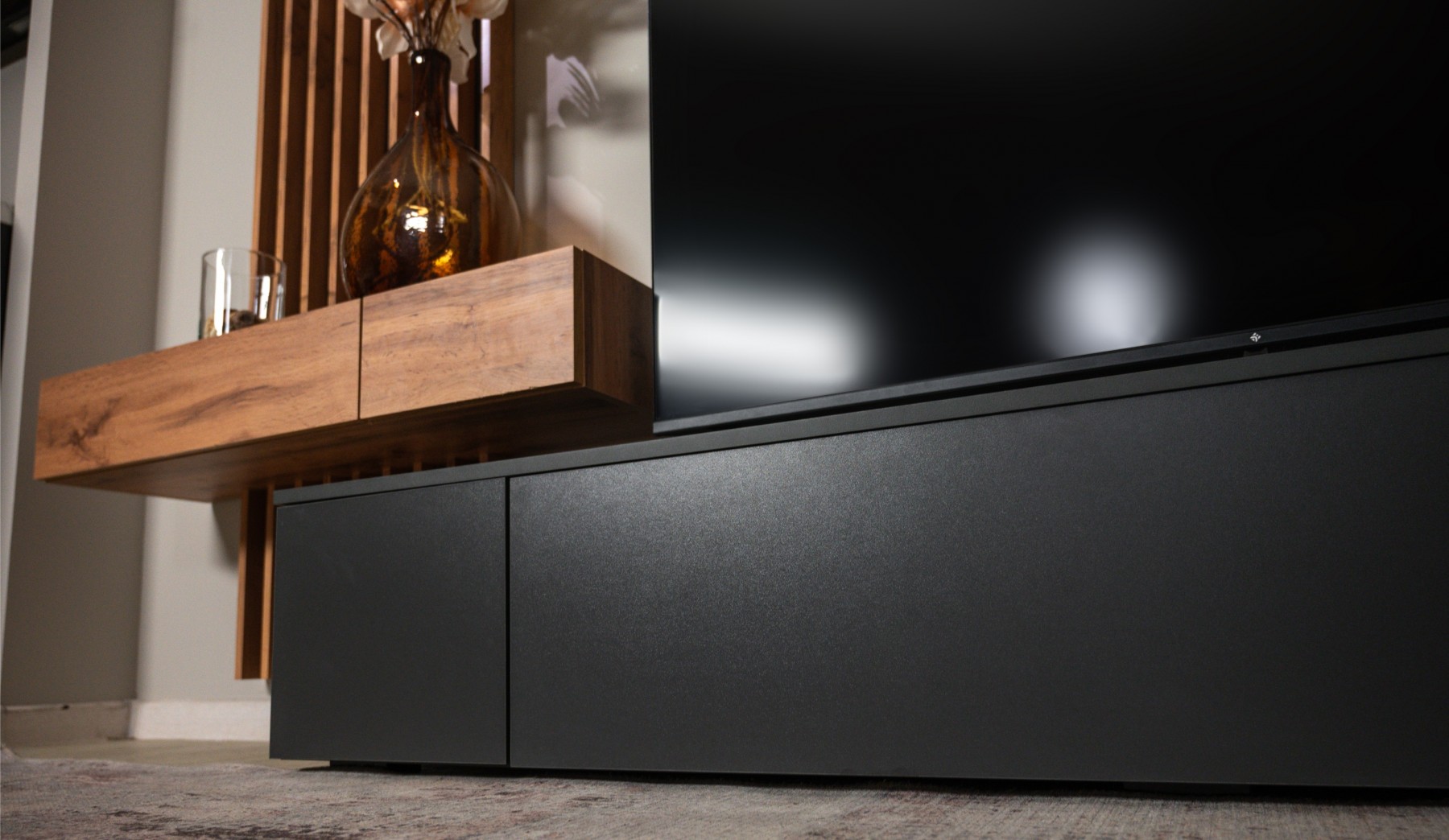 Газовые амортизаторы в тумбе TV обеспечивают плавное открывание и закрывание;