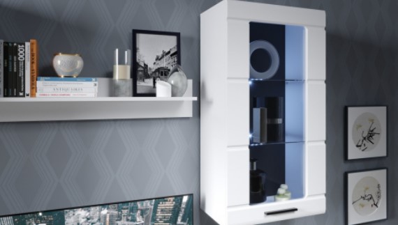 Светодиодная подсветка* в витринах в сочетании с глянцевыми фасадами позволит сделать интерьер более ярким, а атмосферу в комнате уютной и теплой.