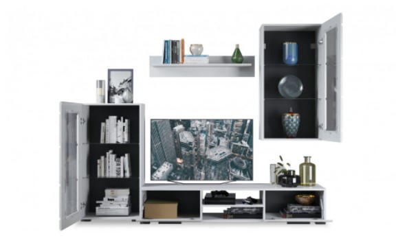 Стенка Рио выполнена в современном стиле. Белые глянцевые фасады из МДФ и витрины с прозрачным стеклом создают в помещении ощущение простора и легкости. Задняя стенка из ЛХДФ Кроношпан (Австрия) черного цвета красиво контрастирует с фасадами и корпусом белого цвета. Светодиодная подсветка сделает акцент на дорогих для Вас вещах, таких как фото, статуэтки или посуда. Мебель выполнена из экологически безопасных и надежных материалов