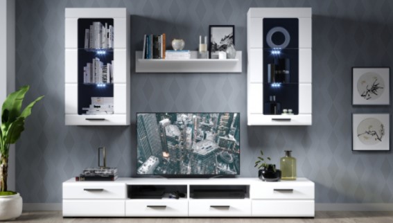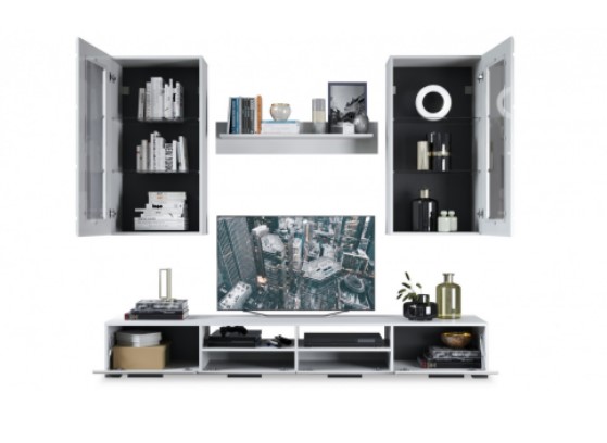 Стенка Рио выполнена в современном стиле. Белые глянцевые фасады из МДФ и витрины с прозрачным стеклом создают в помещении ощущение простора и легкости. Задняя стенка из ЛХДФ Кроношпан (Австрия) черного цвета красиво контрастирует с фасадами и корпусом белого цвета. Светодиодная подсветка сделает акцент на дорогих для Вас вещах, таких как фото, статуэтки или посуда. Мебель выполнена из экологически безопасных и надежных материалов