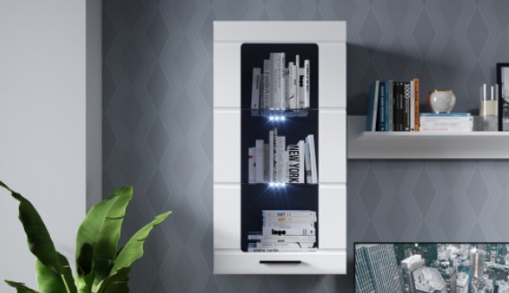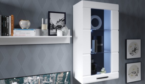 Светодиодная подсветка* в витринах в сочетании с глянцевыми фасадами позволит сделать интерьер более ярким, а атмосферу в комнате уютной и теплой.