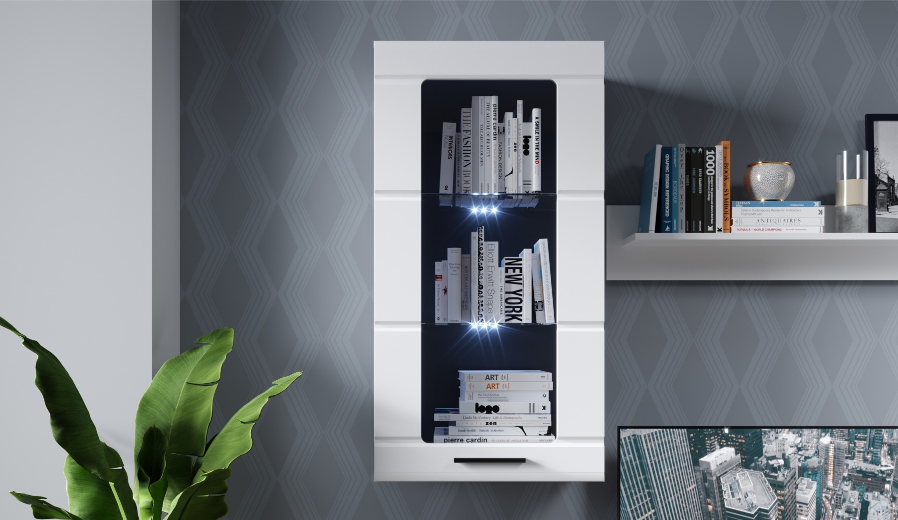 Стенка Рио выполнена в современном стиле. Белые глянцевые фасады из МДФ и витрины с прозрачным стеклом создают в помещении ощущение простора и легкости. Задняя стенка из ЛХДФ Кроношпан (Австрия) черного цвета красиво контрастирует с фасадами и корпусом белого цвета. Светодиодная подсветка сделает акцент на дорогих для Вас вещах, таких как фото, статуэтки или посуда. Мебель выполнена из экологически безопасных и надежных материалов.