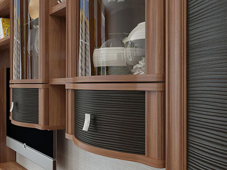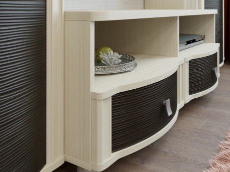 Роскошная модульная коллекция мебели с "волнистыми" фасадами для гостиной. Материал: МДФ покрытый плёнкой, ЛДСП.