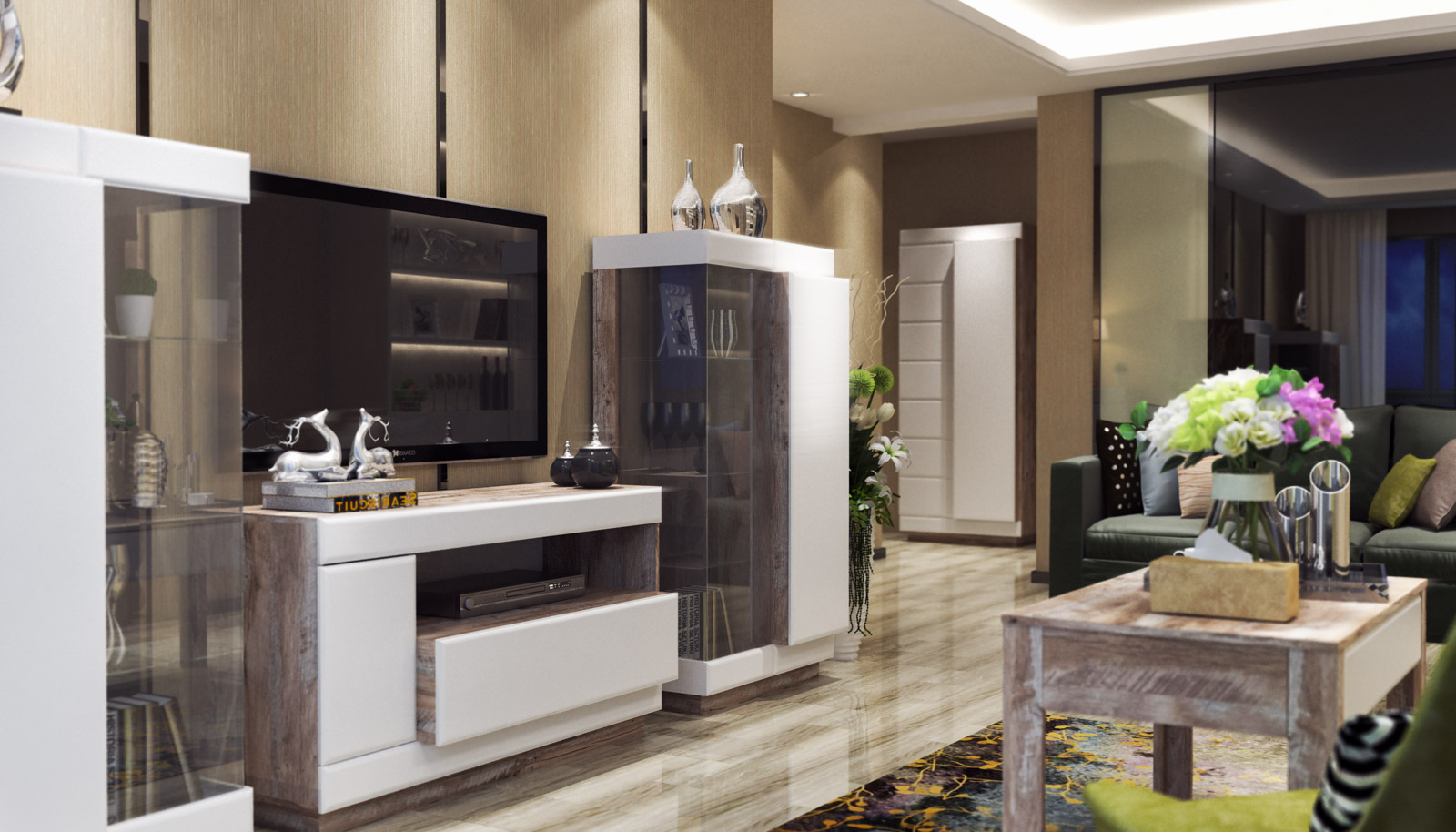 Модульная мебель для гостиной в стильном и гармоничном дизайне. Материал: МДФ, ЛДСП.