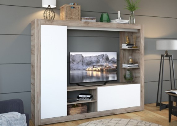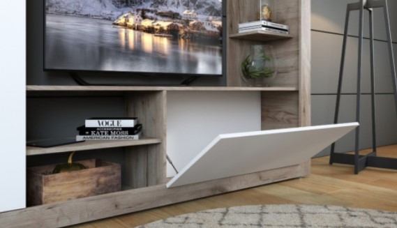Рона – новинка на российском рынке мебели, Европейский тренд! В стенке используются новейшие тенденции – утолщённые линии, выступающие фасады вместо ручек, утопленные внутрь ножки. Уникальное сочетание цветов – белый матовый и крафт серый из нового поколения декоров коллекции Кроношпан (Австрия). Стенка отлично сочетается с другой мебелью, отличающейся по стилю и цвету. Занимая мало места, стенка Рона позволит телевизору занять своё место в гостиной и расположить рядом необходимые приставки, медиа устройства, книги и декор. Выполнена из экологичных материалов