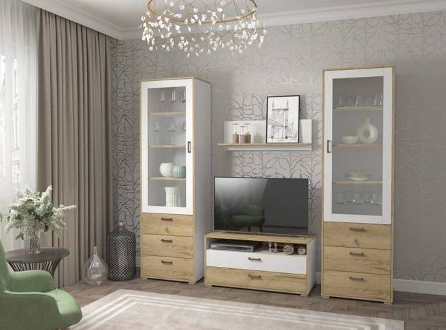 Гостиная «Scandi Сканди 6» (белый платинум - дуб золотой)