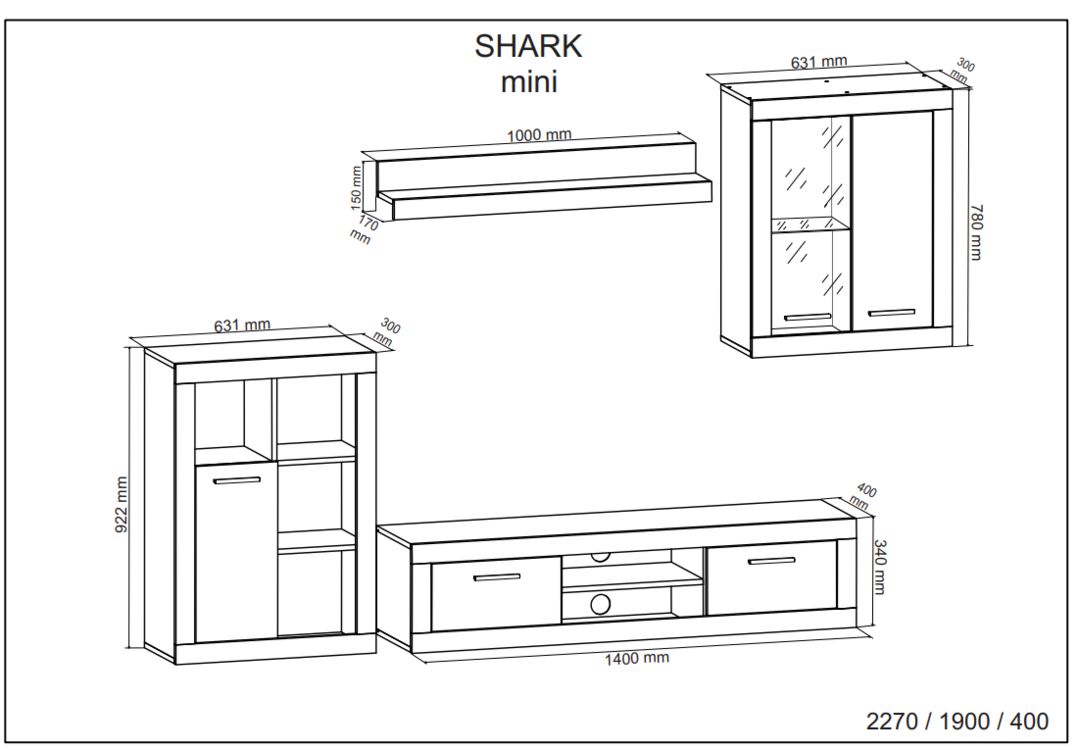 Купить мебель для гостиной ШАРК МИНИ можно только комплектом.