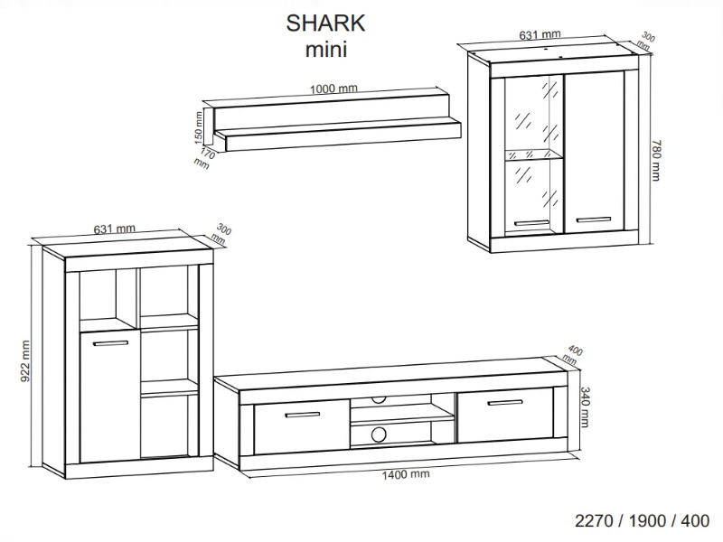 Гостиная «Шарк мини» дуб сонома-нимфеа альба