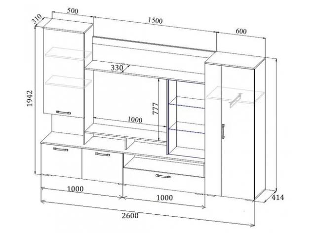 код 129487Открытые ниши позволят разместить телевизор и мультимедийную технику.